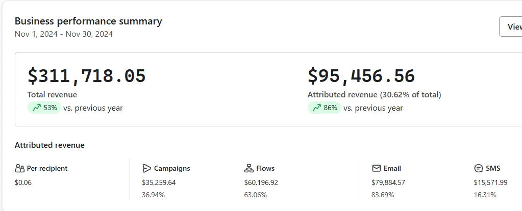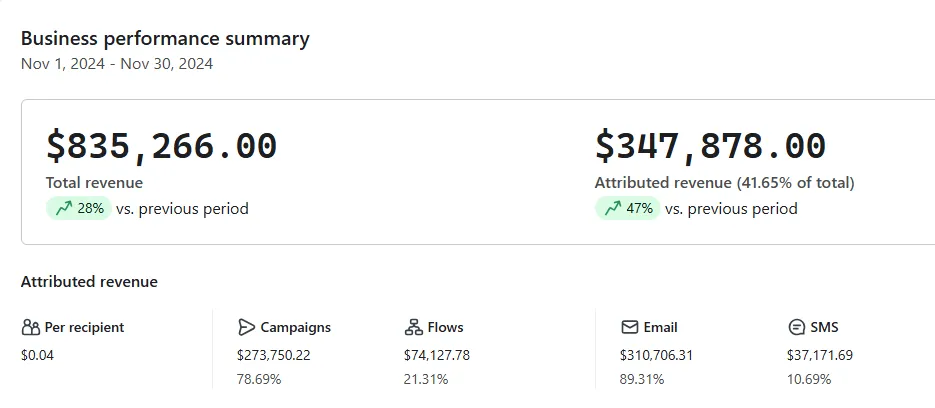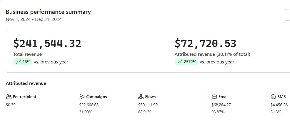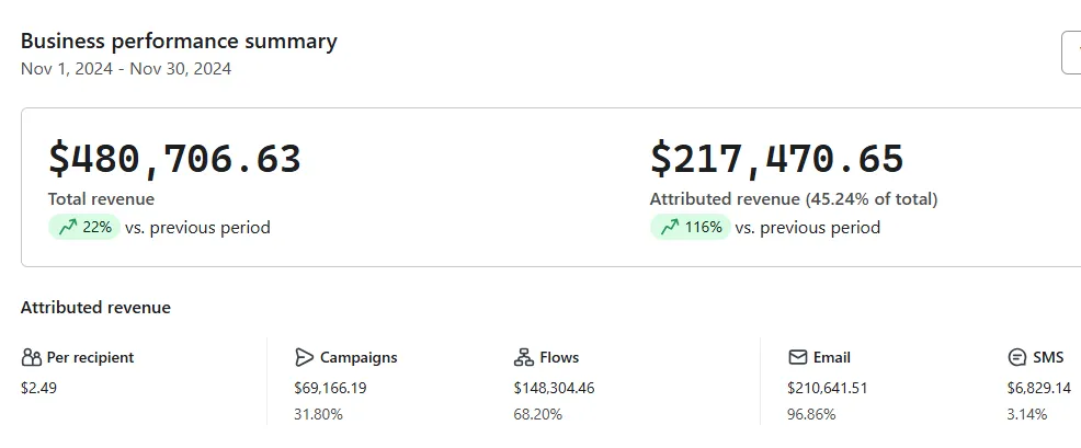 For this automotive brand, over 45% of their total revenue came from our BFCM flows and campaigns adding $217,470 in new revenue.